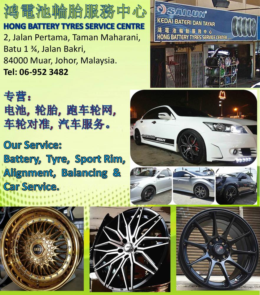 Hong Battery Tyres Service Centre di Muar merupakan pusat servis bateri dan tayar yang dipercayai, menyediakan bateri Amaron berkualiti tinggi serta perkhidmatan pemasangan dan penyelenggaraan profesional untuk kenderaan anda.